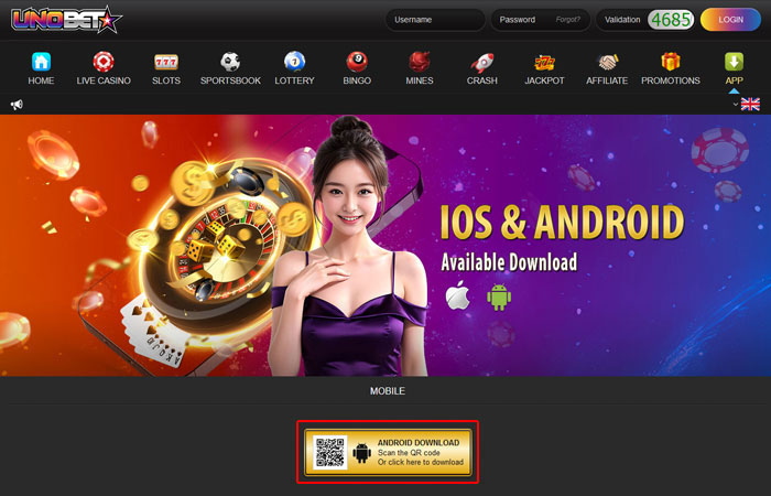 - Để tải ứng dụng về, chỉ cần nhấp vào nút Tải, hoặc truy cập https://android-uno.alt-api.com/LiveCasino.apk với thiết bị di động của bạn, hoặc quét mã QR. Người Chơi hiện tại có thể đăng nhập tài khoản của chính mình trên chiếc Điện Thoại thông minh của bạn.